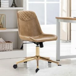 Promo 🌟 Duhome Elegant Lifestyle Faux Leather Golden Base Swivel Desk Chair, Camel 🛒