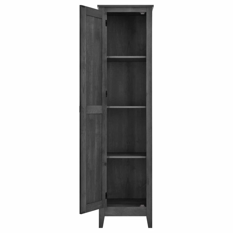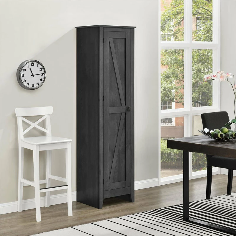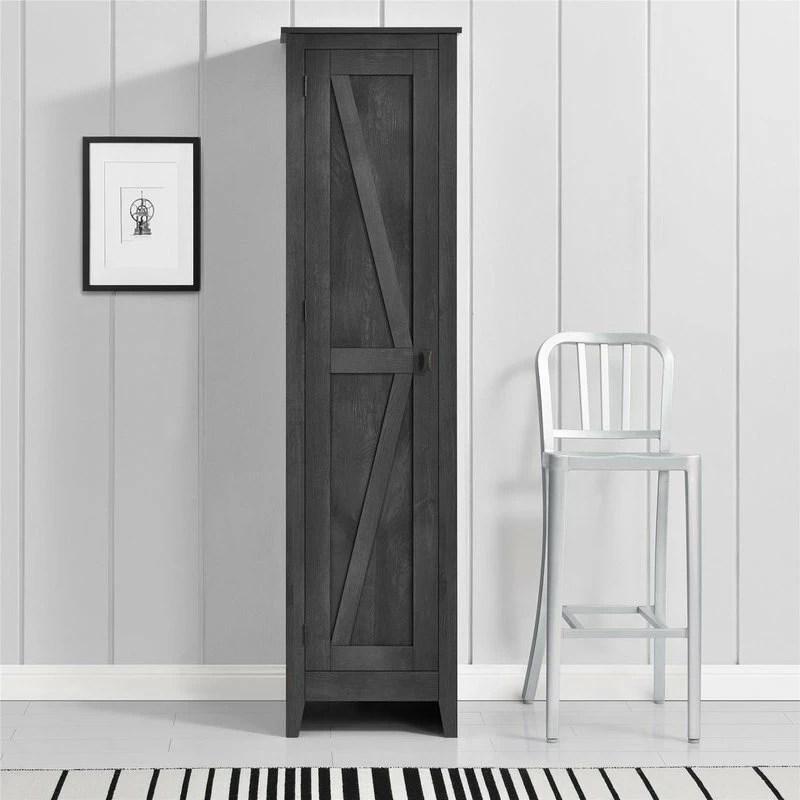 The A Design Studio Glen Orchard 18″ Wide Storage Cabinet is a stylish way to stay on top of your organization. The rustic barn style design and sleek tapered feet gives the look of an old weathered cabinet but the sturdy laminated particleboard and MDF make this cabinet the perfect piece to house your home office supplies, extra linens, seasonal clothing, nonperishable food and more! Open up the door to 4 spacious shelves, 2 adjustable, to fit items of differing sizes. The Glen Orchard Cabinet is recommended to be assembled and moved by 2 adults. A wall anchor kit is provided for extra safety and security. After assembled, this cabinet measures to be 71.9″H x 18.2″W x 15.8″D.