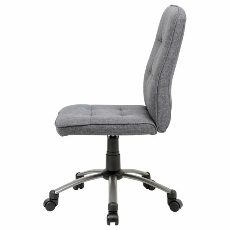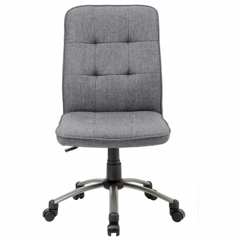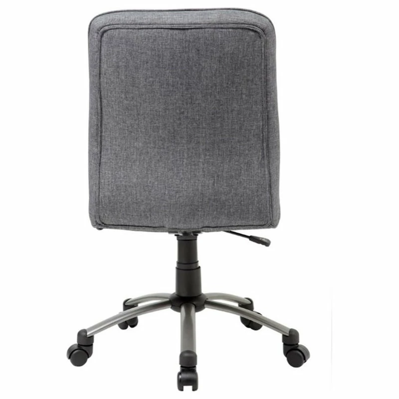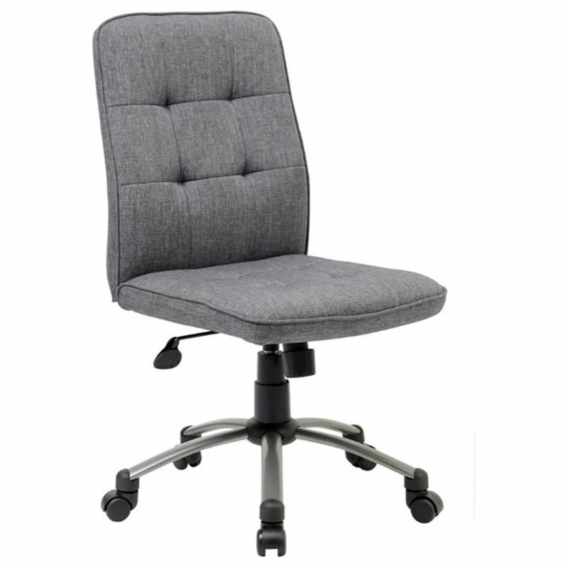 Whether youβre completing a contemporary scheme or lending a loft-ready industrial touch to your decor, this Boss Pretty Parsons Modern task chair makes the perfect addition to your home study or office.The well-cushioned seat is wrapped in solid-hued Commercial-grade linen upholstery, then accented with elegant tufts and framed by classic piped trim. It features a modern 25″ pewter base and with 5 dual-wheel casters for smooth stability. The slim, armless design is perfect for your parson’s desk or perhaps tucked under a writing nook in your kitchen. You can also top it with a patterned pillow for an eye-catching entryway or living room accent. Available in soft neutral linen shades or find the B330 Pretty Parsons Modern with a chrome bass and upholstered in white, black and bold colors with or without arms too.