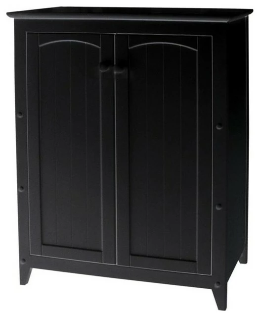 Create storage space without the clutter. This black double door cabinet is stylish and functional. Perfect for your kitchen.