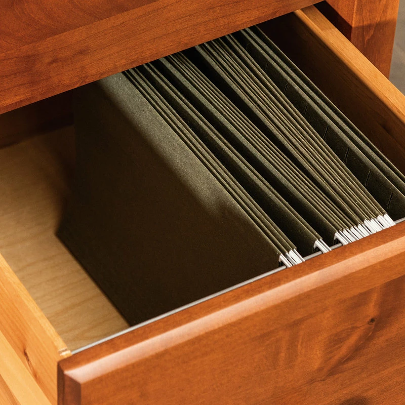 The solid wood 2 Drawer File is a home office staple. You have files and need the long-lasting storage option to house them! With two full-extension, legal-size drawers on metal ball-bearing glides made for the job, you can organize your home office with ease.
