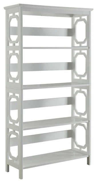 Omega 5 Tier BookcaseFunctional and stylish, the Omega 5 Tier Bookcase by Convenience Concepts is the must have furniture piece for your home. With a sleek contemporary style, it will update any decor. The geometric side panels provide a unique and fashionable look to any room. With five ample shelves, you have more than enough space to store your books or display your favorite collectibles. Constructed from MDF and finished with a non lead based paint, this unit is built to last and was created with your safety in mind. Enjoy right after delivery with its easy assembly of only 7 easy steps. Available in multiple finishes. Complete the look with additional furniture pieces from the Omega Collection by Convenience Concepts. Each sold separately.