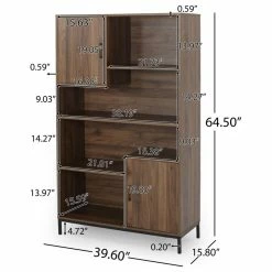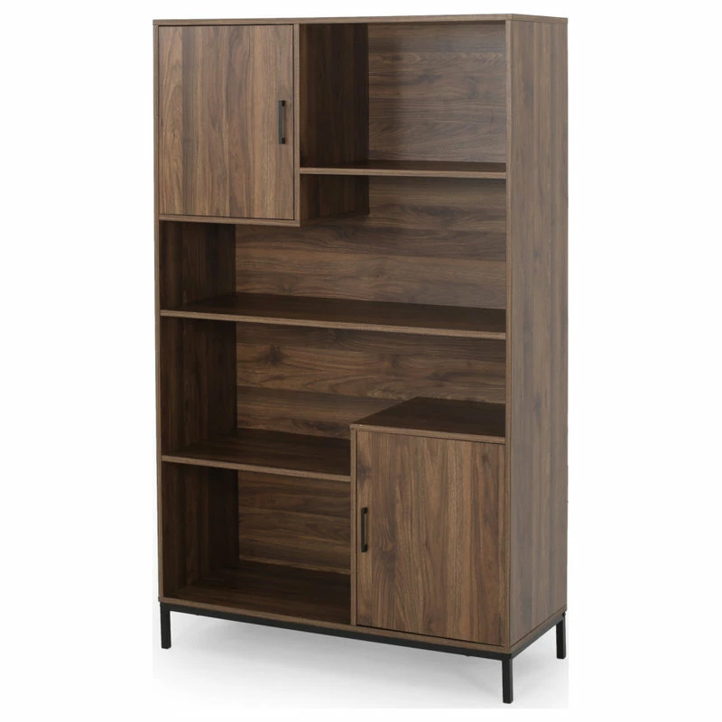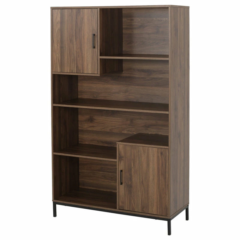 Treat your home to a bookcase that can store your favorite books or display your family photos with a unique touch. Featuring an edgy contemporary design, our bookcase uses an unconventional design to create an artistic look for your home. This features two cabinets and four shelves which allow you to organize and display your items with a charming vibe. Finished with iron legs, this piece offers assuring stability and a sleek look, making this the perfect addition to any interior space.