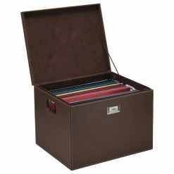 - OUR BEST SELLING COLORS — Our file box comes in two stylish colors that compliment any office or home decor. Our luxurious faux leather black is paired with white stitching and a black velvet interior that creates a classic professional edge in any room. Our mocha brown is joined by white stitching and a brown velvet interior to organize files in a polished way.
