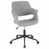 The Kingston Office Chair is upholstered in black leather with nailhead trim and finished in a light cherry. Adjustable height and tilt add comfort to this handsome castered arm chair.