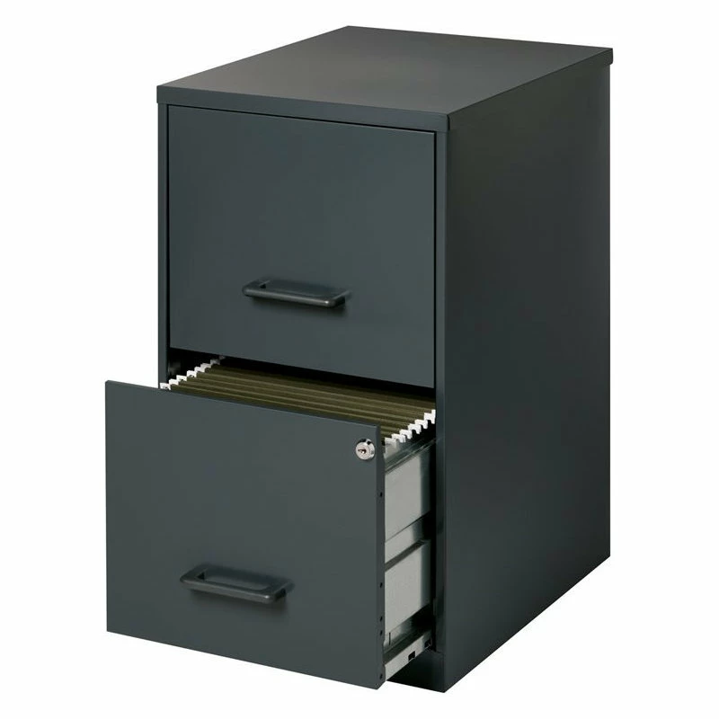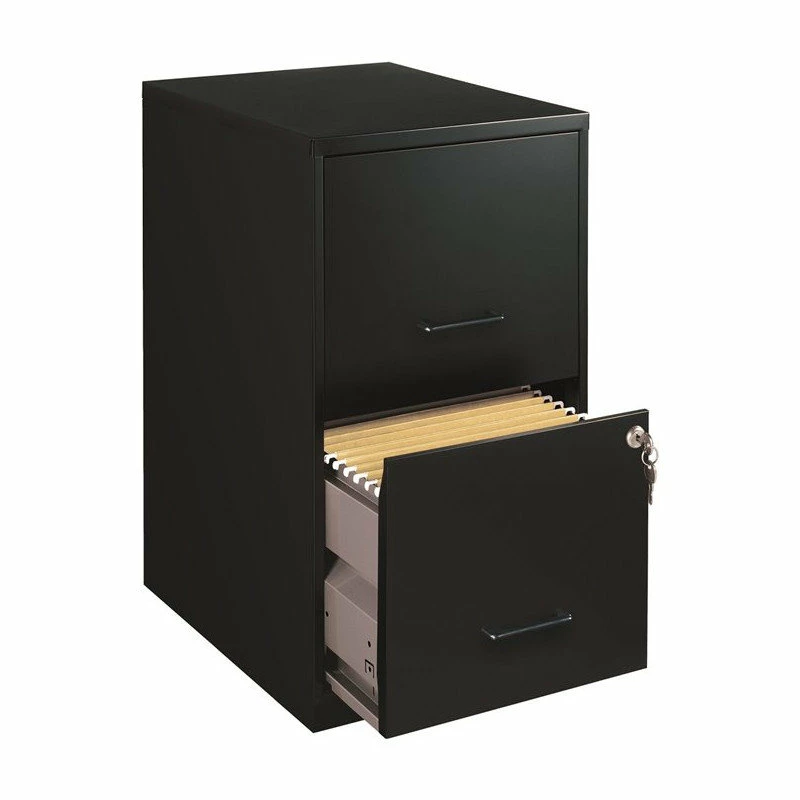 18″ Deep 2-Drawer Black Metal File Cabinet is designed for small office or home office use. Our file cabinet features a smart, efficient design that works well in small spaces and fits under most work surfaces or desks. Each drawer features high-sides to accommodate letter-sized hanging files. The drawers are also a perfect storage solution for all of your other office essentials. Using a patented glide suspension, the drawers have a smooth open and close slide with three-quarter drawer extension to prevent tipping. In addition, you can keep your files and possessions secure by using the built-in lock for both drawers. Bring organization and function to your home or office with this two-drawer file cabinet. Your supplies and files will always be organized and within reach!