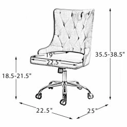 Add a touch of contemporary elegance to your space with a design that is equally functional and stylish. This modern swivel office chair is a wonderful addition to any office or home office with its variety vibrant colors-velvet fabric upholstery that blends with any design taste. With an armless, wide seat, this chair will become the most comfortable chair in your home or office. Designed in a chic style with luxury modest nailhead trim, tufting and piped edges lend a tailored touch, while foam fill offers comfort and support. The chair’s base includes a swivel mechanism, tilt angle adjustable, and a lever-operated lift to adjust the seat height and angle. Sturdy and durable metal base and 360-degree wheels allow you to glide to anywhere in the room, height-adjustable to tailor your professional space. The cute task chair is ideal for any casual or professional working area. It provides comfortable support with a cozy and convenient design.