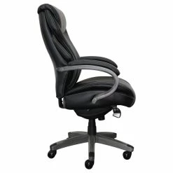 Trusted Quality and Craftsmanship From a trusted brand known for quality, traditional craftsmanship and comfort, the La-Z-Boy Hyland ComfortCore Traditions AIR Technology Executive Office Chair delivers advanced performance for exceptional support and comfort at work and play. Superior Comfort Technology The ComfortCore Plus with Memory Foam advanced layering system offers unique zone-based support, placing cushioning in the areas you need it most. The strategically-assigned plush body pillowing and padded headrest on this office chair combine to provide neck support and minimize pressure points for relief from discomfort caused by prolonged sitting. Ergonomic Design and Lumbar Support Technology This Wellness By Design series La-Z-Boy office chair uses flexible AIR Lumbar Technology that pivots and conforms the lumbar area according to your movement, helping to improve posture, reduce discomfort and provide superior back support. This ergonomic chair is fully adjustable, letting you control height, tilt and lift to suit your needs for customized positioning and optimized body alignment. Built to Last This executive office chair features a thicker plywood subcore, reinforced back bar and heavy-duty castors for durability you can count on for all your day-to-day activities. Traditional Style, Contemporary Functionality Crafted with wood components, this high-back office chair with hand-sculpted arms is upholstered in soft bonded leather to create an elegant blend of traditional style and modern performance that is ideal for any office, home or entertainment space.