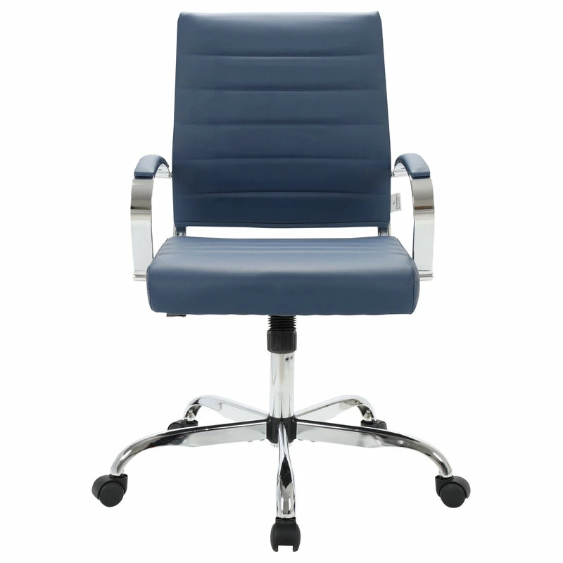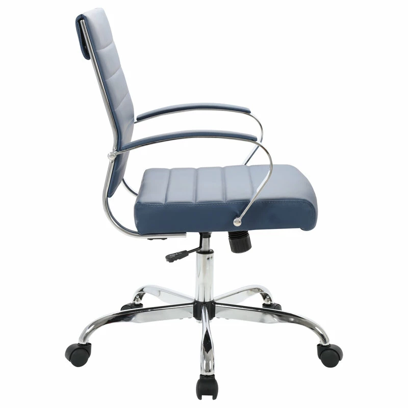 Embrace full luxury with this exceptional Benmar office chair built to provide optimal comfort and a sophisticated aesthetic. Make a statement with an adjustable mid-century style chair that completes the contemporary office space. Inspired by a classic mid-century design, this version shows off a bold and sophisticated presence. With a pneumatic gas lift to adjust the seat height and 360-degree swivel, this chair delivers the versatility and functionality required by the modern working environment. A tension knob and tilt locking lever complement a catered five-point base for easy mobility.