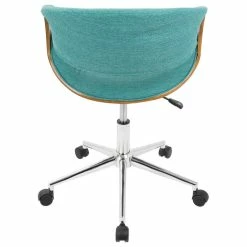 Bring Mid-Century sophistication to your home office with the LumiSource Curvo Office Chair. The unique silhouette provides an open airy look while the curved bent wood back and armrests accent the woven fabric upholstery. Available in cream and teal, the Curvo sits on a 5-star chrome caster base.Features