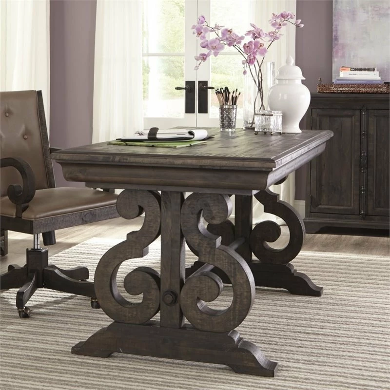 Our classically inspired Bellamy Home Office creates the perfect accent to set the mood for stunning European influenced elegance. Perfectly proportioned to accommodate sprawling school crafts or any work environment, Bellamy maintains its pristine demeanor no matter what the task. Old world charm abounds with pine solids and veneers, matte black with pewter highlights.