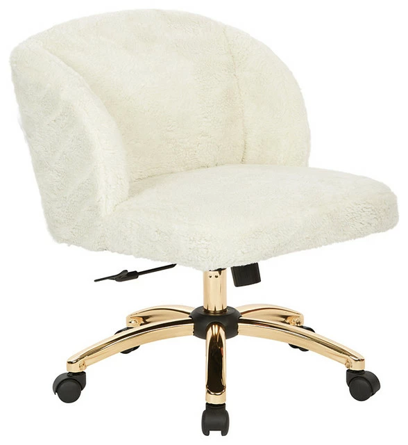 There’s no denying that faux sheepskin and golden framing are a match made in design heaven. This duo turns heads once again on the Ellen chair. Employ this stylish and supportive seat in front of your desk for a stroke of chic appeal in your office space. With an adjustable height, swivel design and five casters, the Ellen ensures you are supported, comfortable and inspired while you’re hard at work.