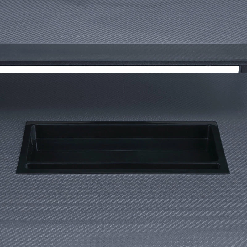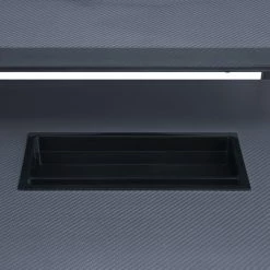 Impact your gaming experience with the Loadout L-Shaped Gaming Desk. Dual raised monitor shelves follow the expanse of the L-shaped surface and are positioned for an ideal viewing height, reducing neck, shoulder and eye fatigue. Roomy, L-shaped configuration provides substantial room for all your gaming gear. Immerse yourself fully in your gaming experience with RGB LED lights. Customize the location of your power up preferences with both a smart, wireless charging pad and USB power-port. Keep eyes in the game with strategically placed device holder with accessory tray. Integrated storage along with our dual power cable management system, keeps your area distraction free, and supports a seamless transition from gaming to home office work station. Sturdy steel construction frame with exciting chevron pattern PVC carbon fiber surface will last for years of competitive enjoyment. Headphone hook and drink holder completes this winning choice.