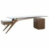 - Three drawers with metal runners and safety stops conceal miscellaneous office supplies.