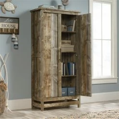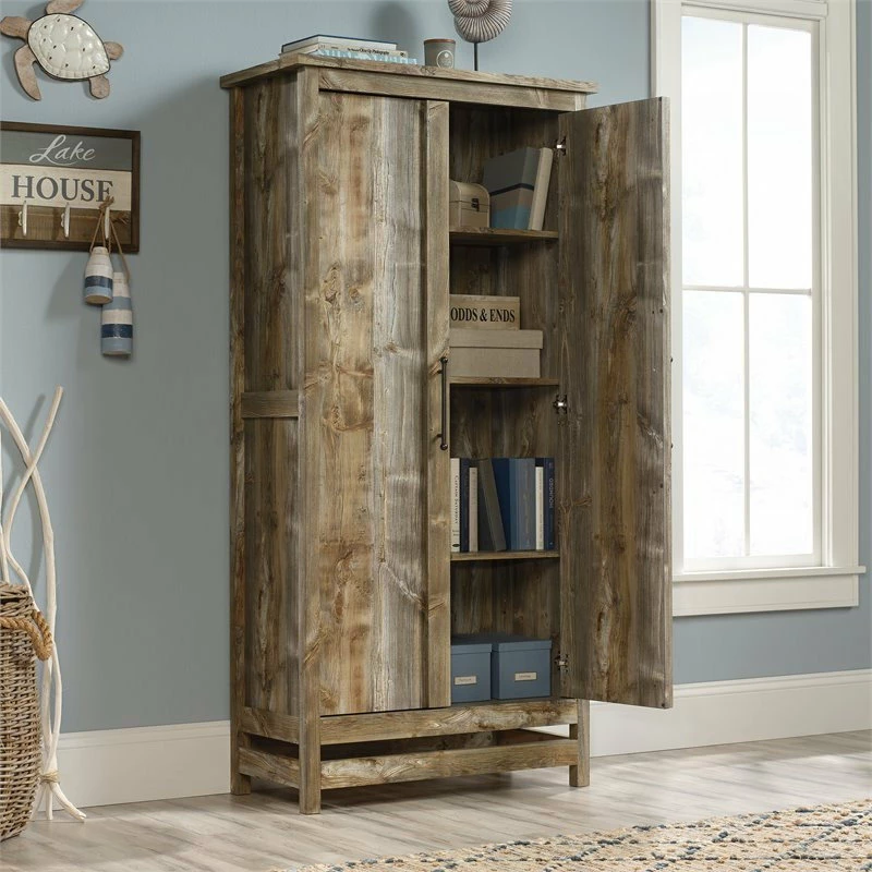 Style and storage all in one! Give your home the additional storage options it needs without having to sacrifice on the style you love with this storage cabinet from the Granite Trace collection. Behind its two large doors is a spacious hidden storage area that includes six adjustable shelves that have the ability to move to different heights to create flexible storage for items of all shapes and sizes. These versatile shelves are ideal for storage of a variety of different items like spare blankets, stacks of shirts, board games and so much more! You can find a spot for all your things. Itβs stunning style and versatile design make this storage cabinet a great addition to any room in your home β the living room, your office, or even the laundry room. It looks great no matter where it stands! Finished in Rustic Cedar and detailed with attractive hardware, this tall cabinet will have you feeling organized in no time.