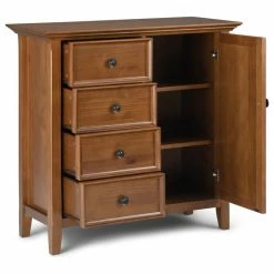 You like to be neat and tidy…that’s good, so do we. It is for this reason we designed the Amherst Medium Storage Cabinet. Four deep drawers conveniently hold your personal items while two enclosed adjustable shelves offer an abundance of versatility to effortlessly organize by design and store away anything you wish to remain hidden…your secret is safe with us. This flexible and functional piece can be used in just about any room in your home.