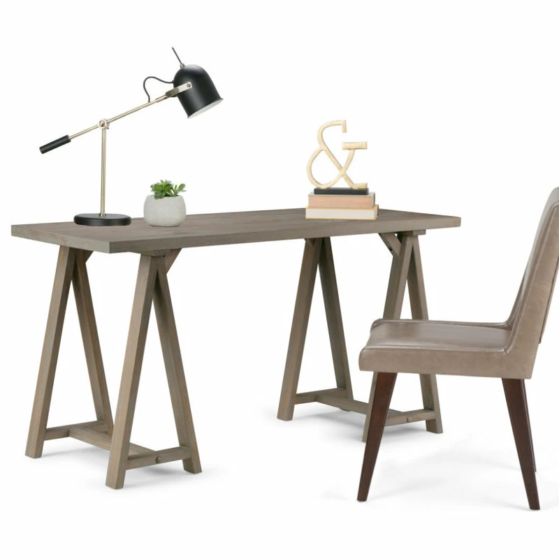 Add some simple, industrial style to your space with the Sawhorse Writing Desk. Made from solid wood Its large surface area is ideal for a monitor, laptop or tablet and leaves enough room for paper, books and other writing accessories. the Sawhorse Desk is a great solution both in home and at your office.