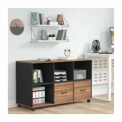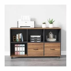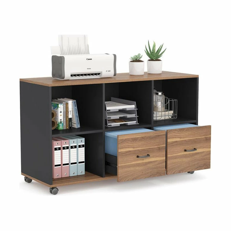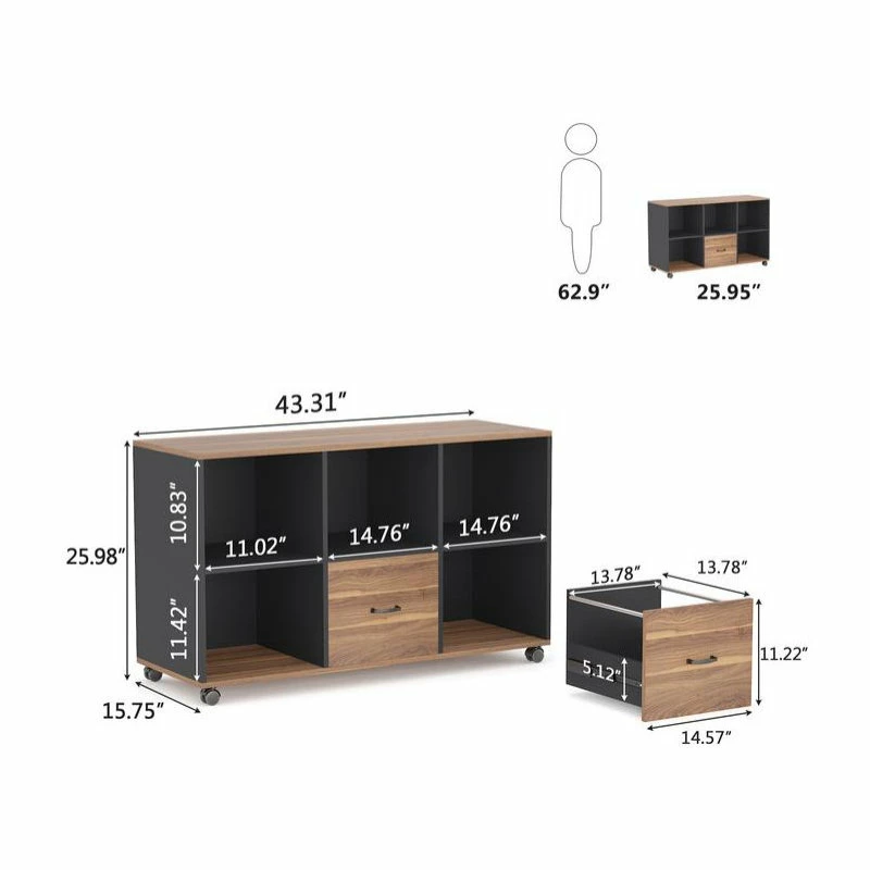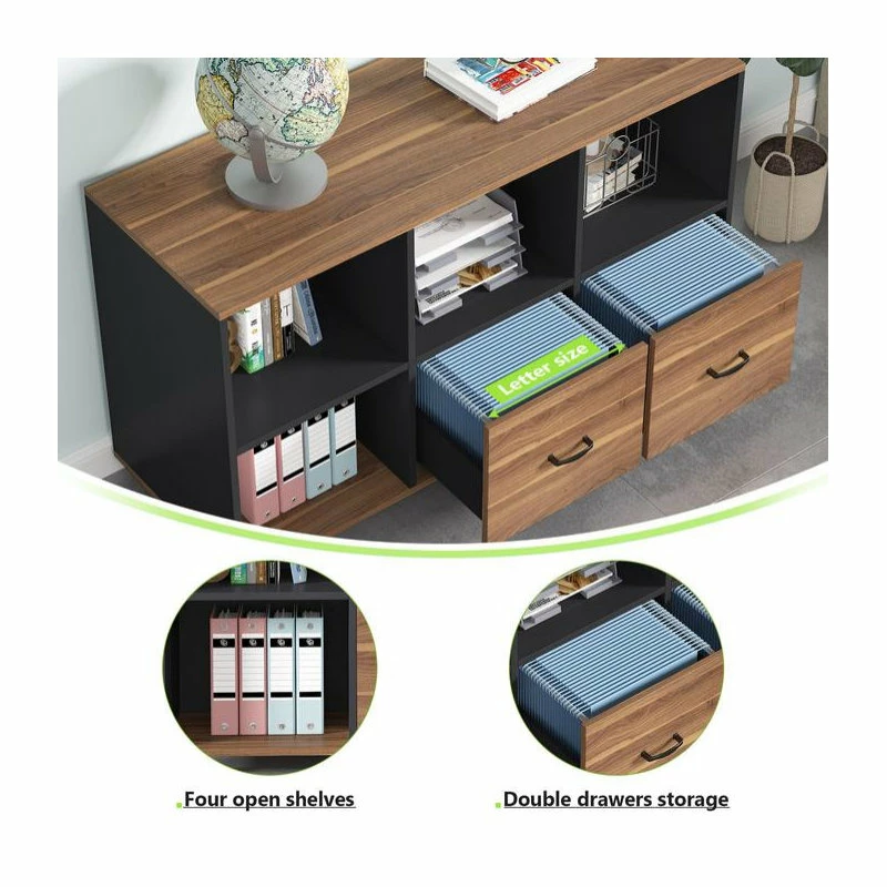 [Large Storage Space ]: The Laterals filing cabinet (size :43*26 15.7)*features with Spacious desktop for printer and four open shelf for printing paper, books offices suppliers organized. Two drawers suitable for the letter size file.[Letter Size File Drawer]: Tribesigns file cabinet with two drawers are designed to keep hanging file folders organized. It provides large storage for office essentials and extends fully for easy access. Quality steel handle is sturdy and durable for long term use.[Mobile Office Cabinet ]: Built-In brakes on the four casters, moved your storage cabinet easily and safely on the carpet. Place the cabinet end of you computer desk to extend your workspace or hide it underneath table to save space.[Functional & Stylish ]: The solid constructed office cabinet could hold printers, scanners, fax machines and any other office suppliers Find all of your stationary and office supplies in one place. The weight capacity of 150lbs.[Satisfaction Guarantee ]: Every piece is labeled, all hardware, tools and clear instruction are included. If there is any question, feel free to contact us. We provide 18 months quality assurance and friendly customers service.