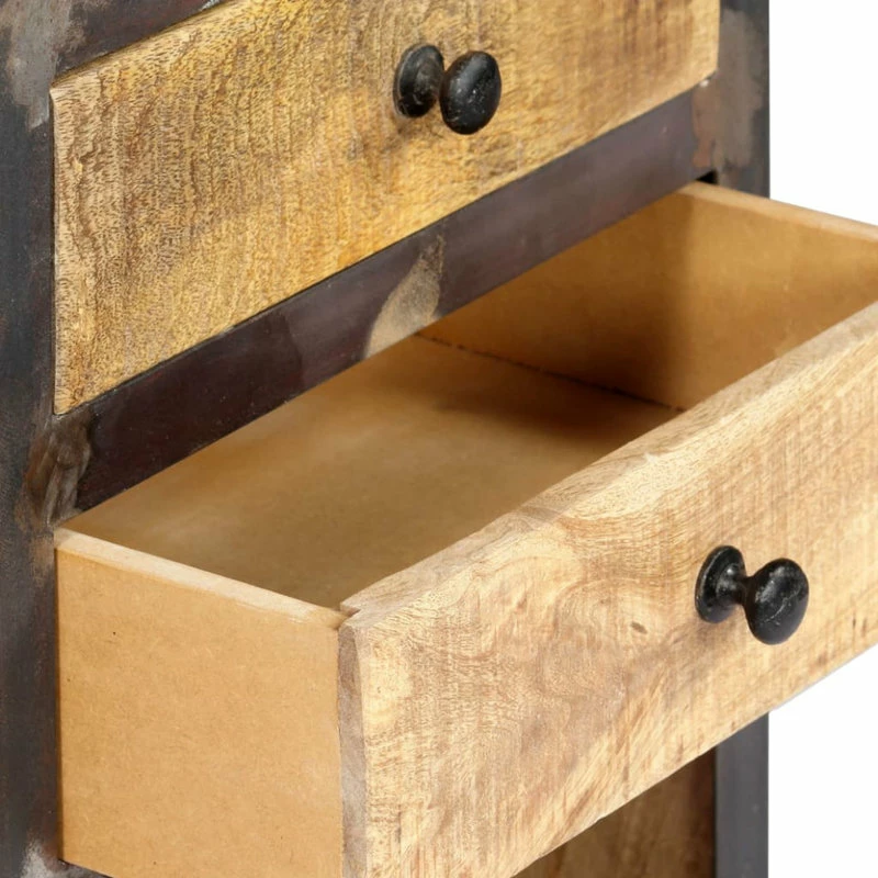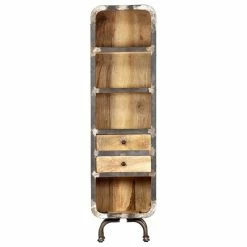 If you’re looking for a simple touch of the rustic as well as industrial charm to add to your interior decor, our solid wooden highboard will do the trick. Equipped with 2 drawers and 4 shelves for various items, this highboard will definitely be a practical and eye-catching addition in your home. This high board is multipurpose, meaning that it can also be used as a book cabinet. Made of solid mango wood with a natural finish, this side cabinet exudes an original look. The exquisite craftsmanship and the beautiful mango wood grains make every piece of furniture unique and slightly different from the next. Additionally, the cast iron frame contributes to the stable and sturdy structure and adds to the cabinet’s industrial style as well. Important note: Variations in color and wood grain makes each of our furniture unique and slightly different from the next; the delivery is random.