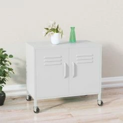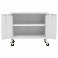 This steel cabinet will keep your house clean and well-organized! This storage cabinet is made of steel, making it sturdy and stable. The adjustable shelf provides ample storage space to keep your DVDs, multimedia appliances, books and small essential items organized and within reach. The cabinet is equipped with four wheels for easy movement. The two front wheels have brakes to avoid accidental move. It is also easy to clean with a damp cloth.