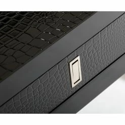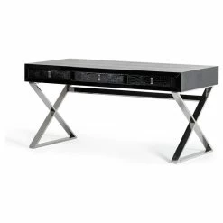 A detailed laser-cut crocodile textured pattern covers the framework of the Congress desk. The frame is then polished with a rich black lacquer to create a glistening effect. Features three storage drawers and contemporary X-shaped stainless steel legs. Matches the A&X Collection.