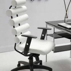 This high back office chair provides ultimate lumbar support. The Unico has firm 100% Polyurethane cushion rolls for the back and a plush seat. The frame is comprised of a steel tube and the arms are height adjustable. The tilt mechanism is locking and height adjustable.
