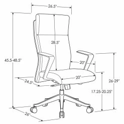 The Draper Leather Executive Chair was designed with your needs in mind. The ergonomically designed reinforced high back, soft headrest, and wide seat are sculpted and padded for optimum support. It is covered in premium soft-touch genuine leather with a leatherette match on the back and angled elbow rests padded for added comfort. This is finished with a polished aluminum base with 360-degree swivel and 5 easy rolling caster wheels. The seat is adjustable in a variety of ways including a standard gas lift height adjustment lever. The reclining function transitions from fully upright at 90 degrees and tilting back to 106 degrees. You can also lock the reclining position so that it will only go back to a certain point and you donβt have to worry about reclining farther back than is desired. There is also a tension knob that adjusts the resistance when reclining that you can make looser or tighter depending on how easily you want to be able to engage the tilting. The knee tilt mechanism is placed closer to the seat front which helps keep your feet on the floor while reclining mainly the backrest instead of the whole chair. This prevents the rocking chair effect and helps keep your feet on the ground while still increasing blood circulation and better spinal alignment. With leather and movements so smooth it will have you looking forward to working at the office or at home. Pair it with the matching guest chair for a complete set. Available in black, dark grey, dark teal blue, off-white and red leather. Suggested weight capacity is 418 pounds.